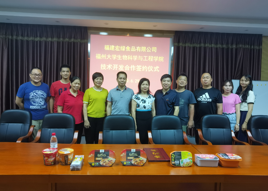 6月29日下午,威尼斯官网与福建宏绿食品有限公司产学研合作签约仪式在嘉锡楼225举行。威尼斯官网88级校友、福建宏绿食品有限公司董事长黄天金先生,学院王秀萍书记,汪少芸院长,刘树滔教授等出席了签约仪式。