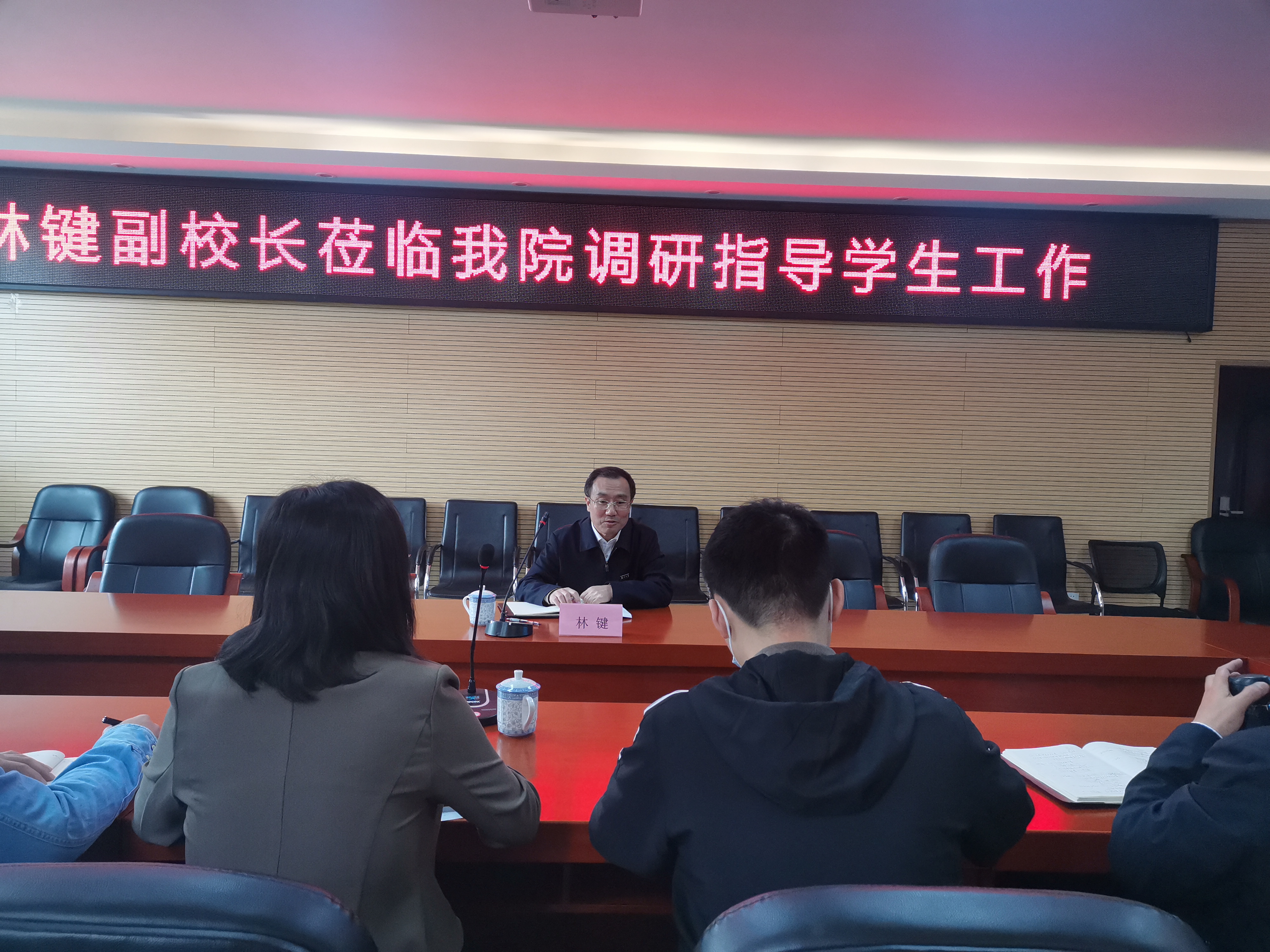 4月20日,校党委常委、林键副校长莅临学院调研指导学生工作,院党委曹仁秋副书记和全体专兼职辅导员参加调研座谈会。