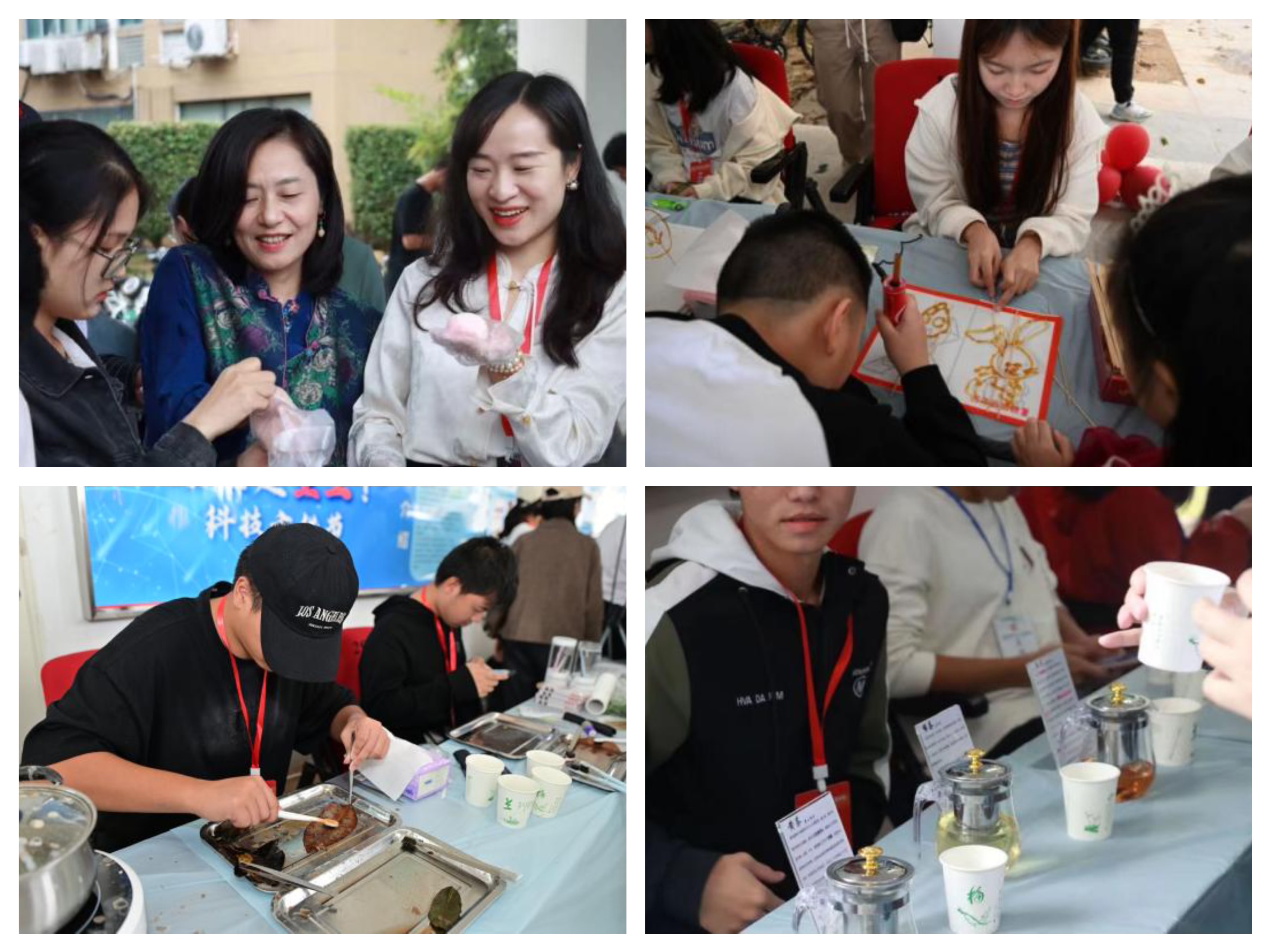 启动仪式结束后,学院领导陪同校友嘉宾一同前往“这里是生工!”科技文化节大型现场展示和体验区。本次科技文化节活动,在保留传统节目——食品“体验区”的基础上,增设了科技成果展示区,注入了更多的科技元素,将更多科学与技术展现给大家,在互动娱乐中加深对专业的热爱和对知识的构建,在体验观赏中感受生物科学中蕴含的浓浓科技色彩。